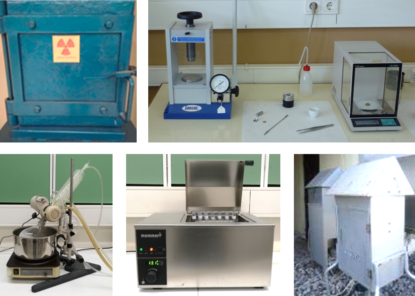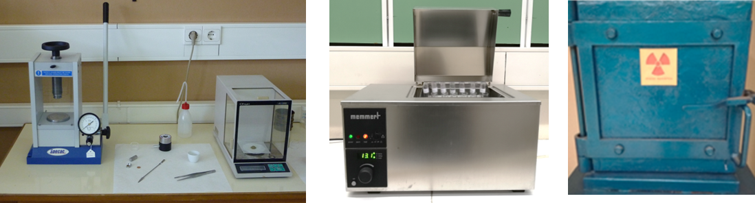 balances, ordinary and high-temperature heaters, a hot bath, a pellet press, an air pump etc).